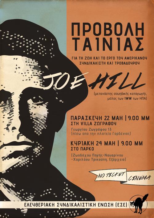 Αυτή την Κυριακή η ΕΣΕ προβάλλει στο Πάρκο την εξαιρετική ταινία «Joe Hill», για τη ζωή και το έργο του αμερικάνου συνδικαλιστή και τροβαδούρου (μετανάστη σουηδικής καταγωγής, μέλος των ΙWW των ΗΠΑ).
