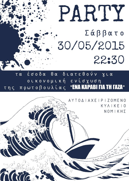 Πάρτυ για την οικονομική ενίσχυση της πρωτοβουλίας "Ένα καράβι για την Γάζα". Θα ακολουθήσει αφίσα
