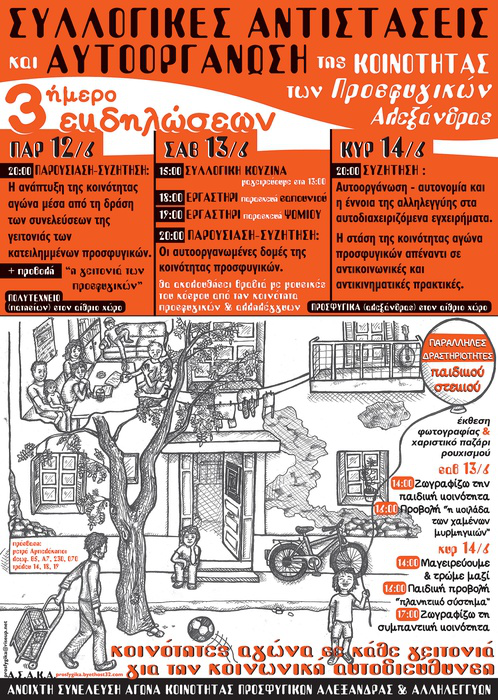 3ήμερο Εκδηλώσεων 12-13-14 ΙΟΥΝΗ ΣΥΛΛΟΓΙΚΕΣ ΑΝΤΙΣΤΑΣΕΙΣ και ΑΥΤΟΟΡΓΑΝΩΣΗ της ΚΟΙΝΟΤΗΤΑΣ των Προσφυγικών Αλεξάνδρας