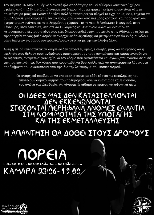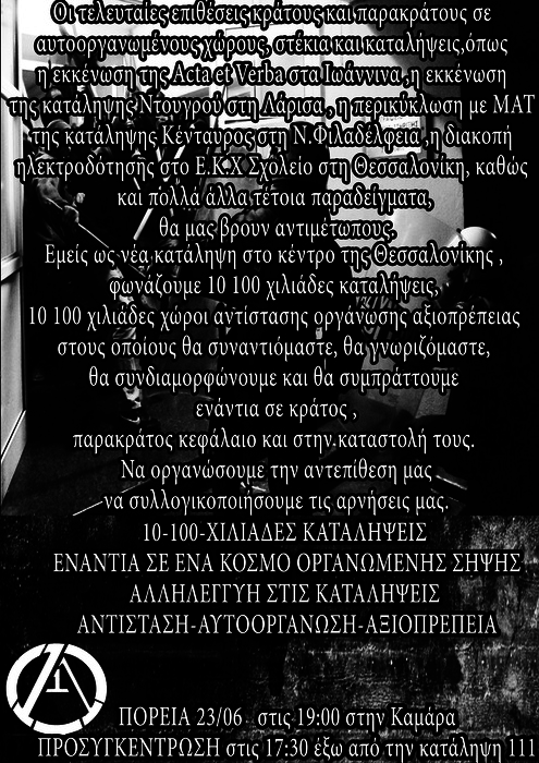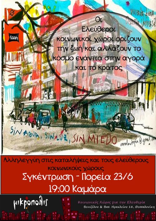 ΠΟΡΕΙΑ 23/06 στις 19:00 στην Καμάρα ΠΡΟΣΥΓΚΕΝΤΡΩΣΗ στις 17:30 έξω από την κατάληψη 111