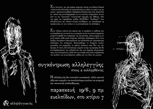 Συγκέντρωση αλληλεγγύης στους 2 συλληφθέντες από την παρέμβαση στην Ακρόπολη για τον απεργό πείνας Κ. Σακκά