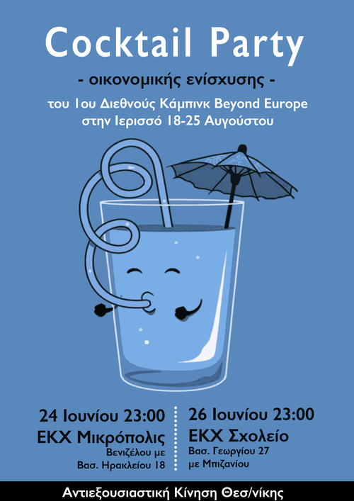 Cocktail Party οικονομικής ενίσχυσης του 1ου Διεθνούς Κάμπινκ Beyond Europe στην Ιερισσό 18-15 Αυγούστου