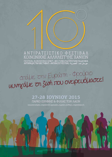 Το 10ο Αντιρατσιστικό Φεστιβάλ Κοινωνικής Αλληλεγγύης Χανίων θα πραγματοποιηθεί στις 27-28 Ιουνίου στο Πάρκο Ειρήνης και φιλίας των Λαών.