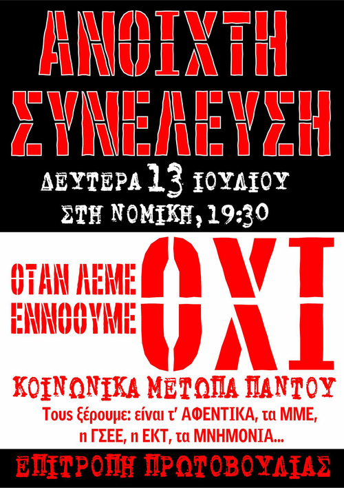 Ανοιχτή συνέλευση όταν λέμε όχι εννοούμε όχι
