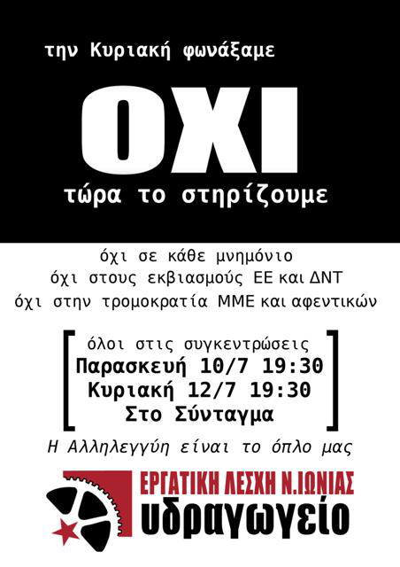 Ανακοίνωση της Εργατικής Λέσχης Νέας Ιωνίας "Υδραγωγείο" σε σχέση με το αποτέλεσμα του Δημοψηφίσματος και τις πολιτικές εξελίξεις.