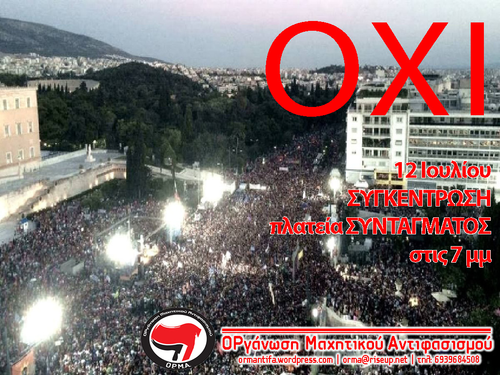 «Μένουμε στο ΌΧΙ» - συγκεντρώσεις διαμαρτυρίας την Παρασκευή 10/7 στις 19:00 στα Προπύλαια και την Κυριακή 12/7 στις 19.30 στην πλατεία Συντάγματος