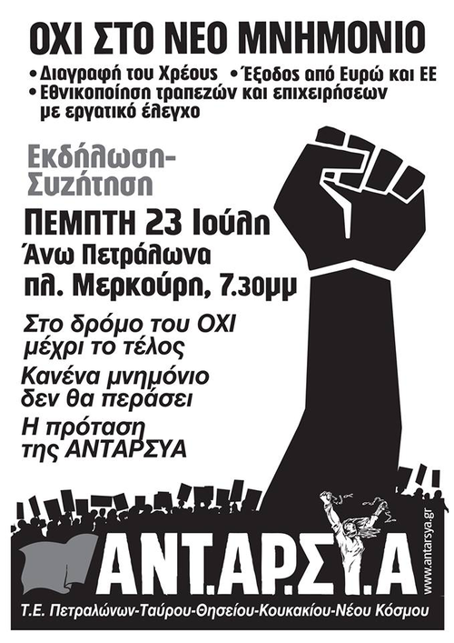 Εκδήλωση ΤΕ ΑΝΤΑΡΣΥΑ, Άνω Πετράλωνα Πέμπτη 23/7