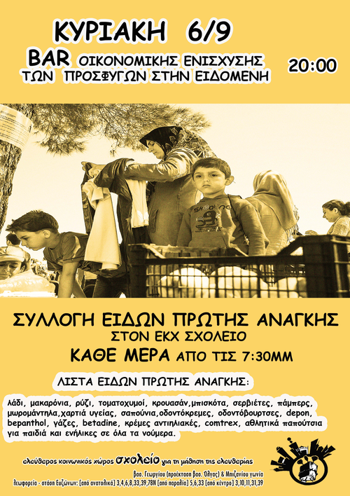 Συλλογή ειδών πρώτης ανάγκης για τους πρόσφυγες της Ειδομένης