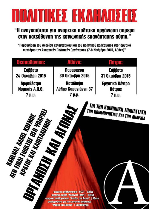 Παρουσίαση του σχεδίου καταστατικού και του πολιτικού καλέσματος στο ιδρυτικό συνέδριο της Αναρχικής Πολιτικής Οργάνωσης (7-8 Νοέμβρη 2015, Αθήνα)