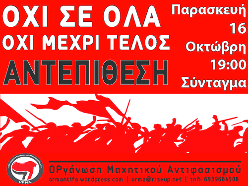 Καμία αναμονή, καμία ανακωχή! Όλοι στους δρόμους, όλοι στον αγώνα! αντιμνημονιακή-αντικυβερνητική Συγκέντρωση, Παρασκευή 16 Οκτώβρη 7μμ Πλατεία Συντάγματος