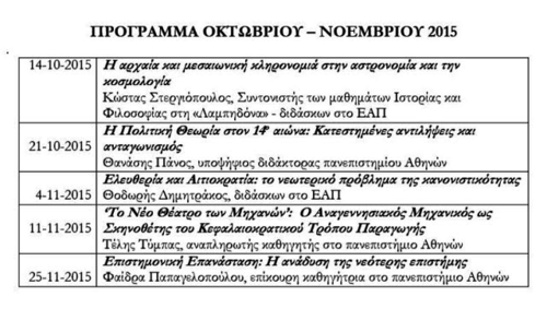 Δείτε παρακάτω την αφίσα των φετινών μαθημάτων καθώς και το πρόγραμμα Οκτωμβρίου-Νοεμβρίου