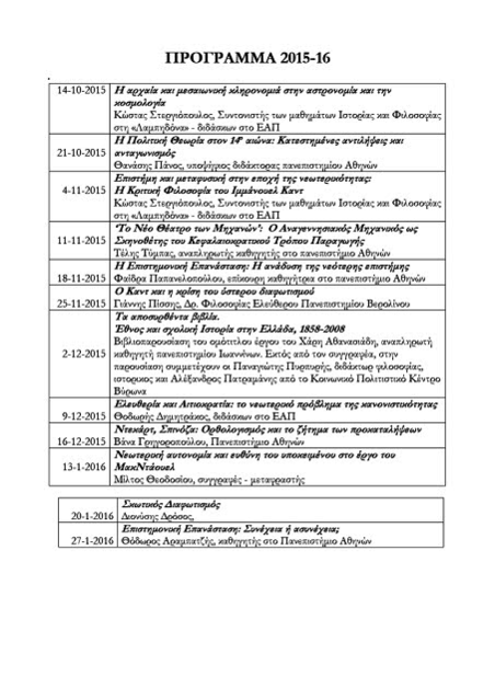 Κύκλος ανοικτών μαθημάτων Ιστορίας και Φιλοσοφίας