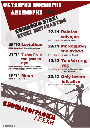 Οκτώβρης - Νοέμβρης - Δεκέμβρης 2015 - Προβολές ταινιών, κάθε Κυριακή στις 21:00 ,στο Κοινωνικό Στέκι - Στέκι Μεταναστών Χανίων