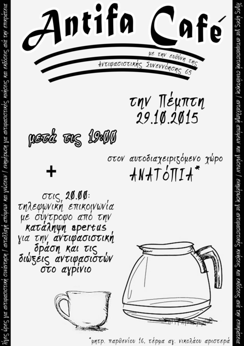 Antifa café antifa cafe την πέμπτη 29 οκτώβρη στην ανατόπια μετά τις 19.00.