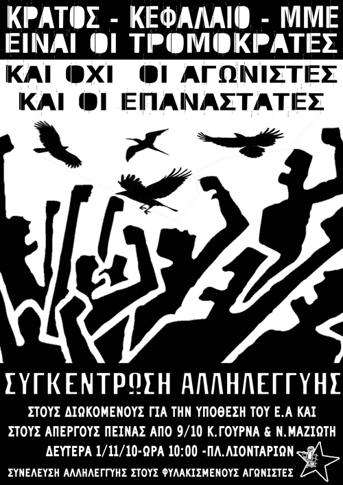 ΣΥΓΚΕΝΤΡΩΣΗ ΑΛΛΗΛΕΓΓΥΗΣ ΣΤΟΥΣ ΔΙΩΚΟΜΕΝΟΥΣ ΓΙΑ ΤΗΝ ΥΠΟΘΕΣΗ ΤΟΥ ΕΠΑΝΑΣΤΑΤΙΚΟΥ ΑΓΩΝΑ ΚΑΙ ΣΤΟΥΣ ΑΠΕΡΓΟΥΣ ΠΕΙΝΑΣ ΑΠΟ 9/10 Κ.ΓΟΥΡΝΑ & Ν.ΜΑΖΙΩΤΗ