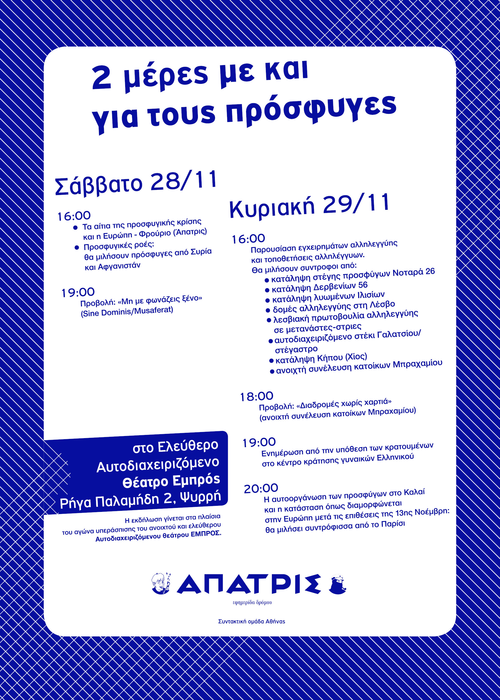 - Τα αίτια της προσφυγικής κρίσης και η Ευρώπη - Φρούριο (Εισήγηση από τη συντακτική ομάδα Αθήνας - Άπατρις)