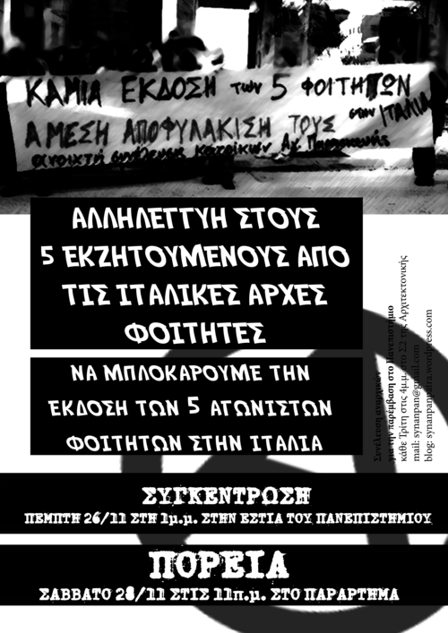 Πορεία ενάντια στην έκδοση των 5 αγωνιστών φοιτητών στην Ιταλία