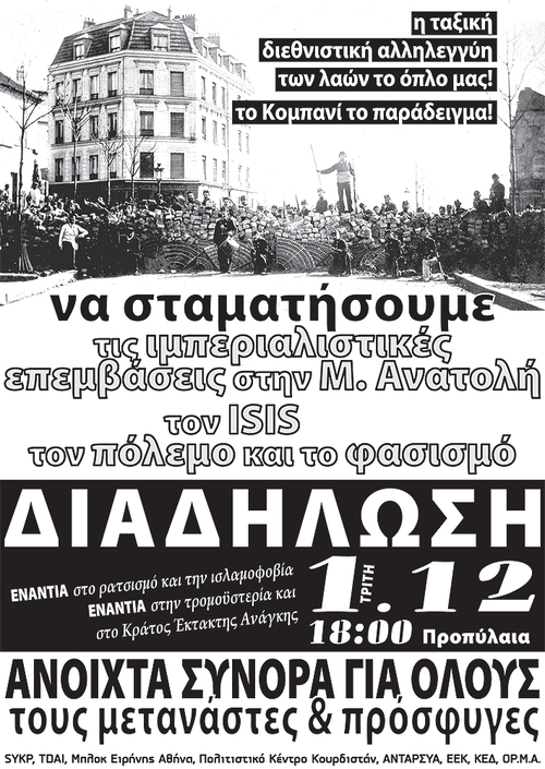 Τρίτη 1/12/2015 - Διαδήλωση Ταξικής Διεθνιστικής Αλληλεγγύης