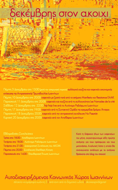 Αυτοδιαχειριζόμενος Κοινωνικός Χώρος Ιωαννίνων ( ΑΚΟΙΧΙ ) Πλατεία Νεομάρτυρος Ιωάννη 5 (κάτω από το δημοτικό ωδείο)