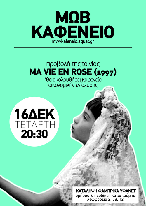 Προβολή ταινίας "Ma vie en rose" (1997), στην συνέχεια καφενείο οικονομικής ενίσχυσης
