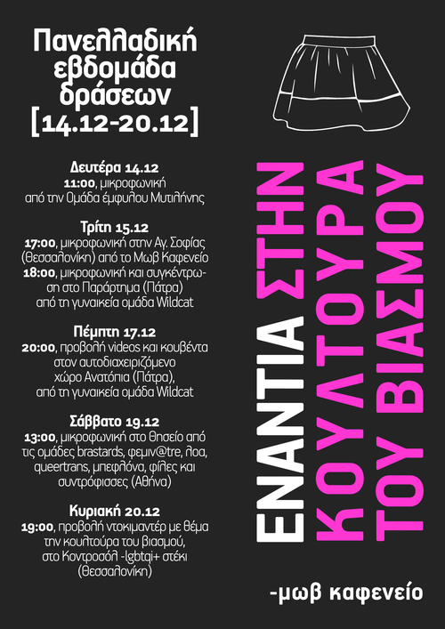 Με αφορμή το περιστατικό στον Ασπρόπυργο, πανελλαδική εβδομάδα συντονισμού ενάντια στην κουλτούρα του βιασμού.