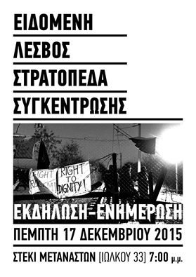 Εκδήλωση - ενημέρωση: Ειδομένη - Λέσβος - Στρατόπεδα Συγκέντρωσης