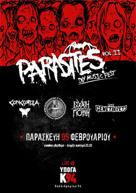 Λογω τεχνικων προβληματων το δευτερο PARASITES Fest θα διεξαχθει στην ΥΠΟΓΑ Κ94 Καλλιδρομιου 94 στα εξαρχεια