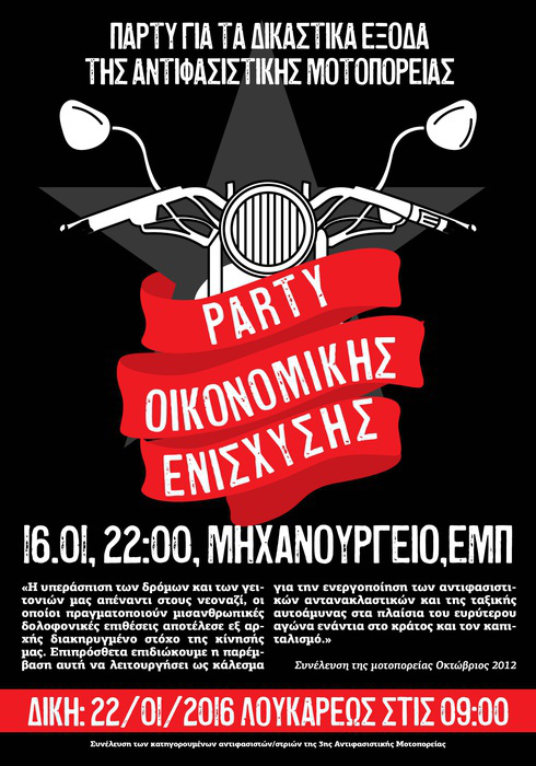 Μπορεί από το φθινόπωρο του 2012 να έχει περάσει τόσος χρόνος που δεν φαίνεται καν να χωρά στα τρία ημερολογιακά χρόνια που μας χωρίζουν από τότε. Όμως, η πολιτική, ηθική και οικονομική στήριξη των κατηγορουμένων και μέσα από αυτήν η πολιτική υπεράσπιση του δικαιώματος και της υποχρέωσής μας στην αντιφασιστική και ταξική αυτοάμυνα είναι ακόμα αναγκαία. Ίσως πολύ περισσότερο στην εποχή που οι δολοφονικές επιθέσεις των φασιστών και των απανταχού ευρωπαίων «αγανακτισμένων κατοίκων» εναντίον των προσφύγων/μεταναστών, και ο δολοφονικός «ανθρωπισμός» των ευρωπαϊκών κρατών, με αριστερές και δεξιές κυβερνήσεις, συνιστούν τις δύο πλευρές του ίδιου νομίσματος. Του νομίσματος του νόμου και της τάξης του κεφαλαίου που οφείλουμε να βγάλουμε εκτός κυκλοφορίας.