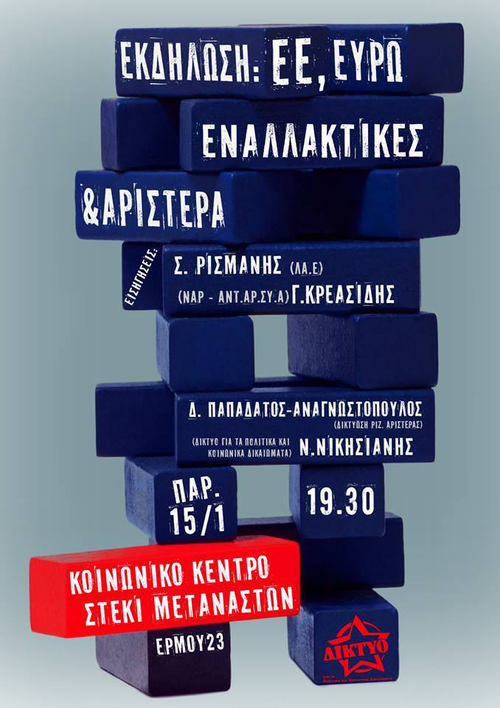 Εκδήλωση: Η Ευρωπαϊκή Ένωση, το Ευρώ, οι εναλλακτικές και η αριστερά