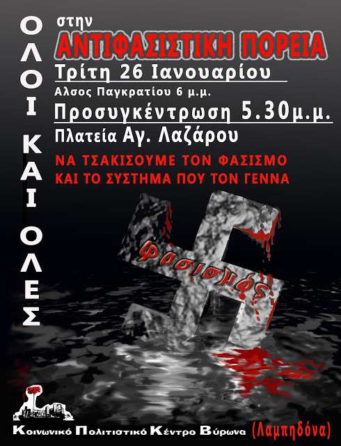 Καλούμε όλους και όλες, Τρίτη 26 Ιανουαρίου, στην αντιφασιστική πορεία
