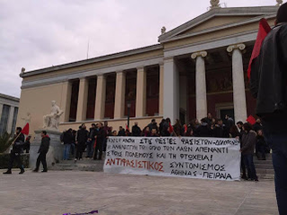 Ο Αντιφασιστικός Συντονισμός Αθήνας - Πειραιά καλεί σε μεγάλη αντιφασιστική συγκέντρωση και διαδήλωση, Σάββατο 30/1 στις 17.00 στα Προπύλαια, για να διατρανώσουμε την αλληλεγγύη μας στους μετανάστες και στους πρόσφυγες και να κρατήσουμε μέχρι τέλους τους φασίστες στις τρύπες τους.