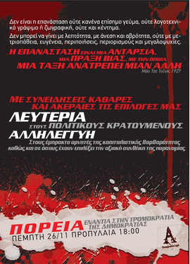 Αγώνας ενάντια σε κράτος & κεφάλαιο, αλληλεγγύη στους φυλακισμένους και διωκόμενους αγωνιστές και σε όσους αντιστέκονται.