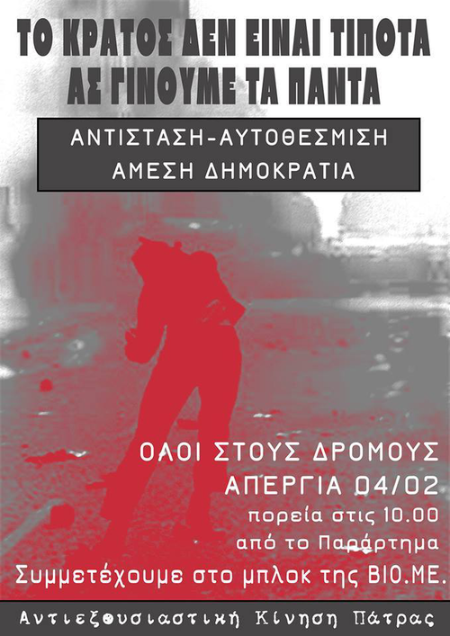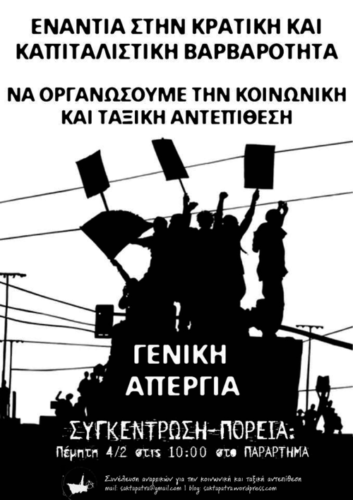 Κείμενο-κάλεσμα για τη Γενική Απεργία της 4ης Φλεβάρη