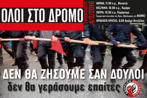 Η αναρχική ομοσπονδία καλεί τις εκμεταλλευόμενες και τους εκμεταλλευόμενους να πλαισιώσουν δυναμικά τις κινητοποιήσεις στις 4 Φλεβάρη ενάντια στο ασφαλιστικό νομοσχέδιο.