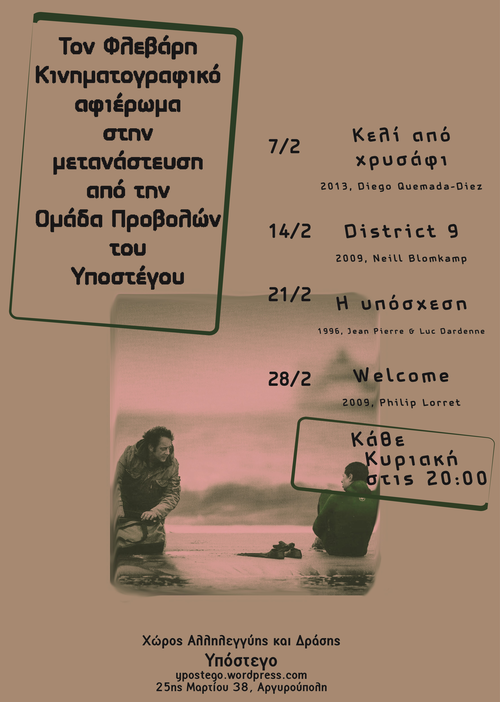 Στο Υπόστεγο, τον Φεβρουάριο τέσσερις ταινίες με θέμα τη μετανάστευση από την ομάδα προβολών του χώρου. Κάθε Κυριακή στις 20:00