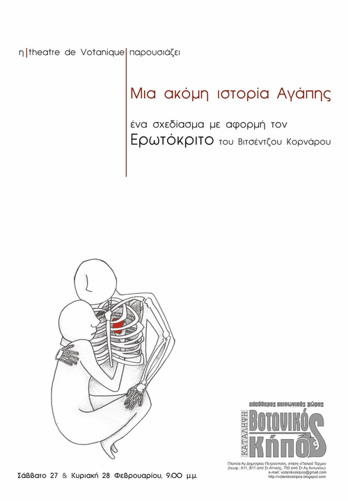 H theatre de Votanique παρουσιάζει ένα πρώτο σχεδίασμα πάνω στους δύο γνωστούς μονολόγους του Ερωτόκριτου και της Αρετούσας.