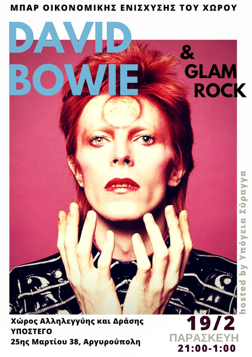 Μπαρ οικονομικής ενίσχυσης του χώρου με αφιέρωμα στον David Bowie και στο Glam Rock.