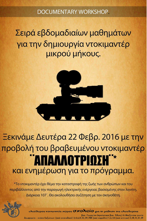 (ακυρώνεται) Μαθήματα για τη δημιουργία ντοκιμαντέρ μικρού μήκους
