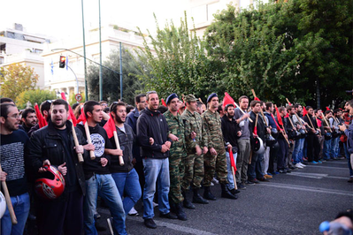 Βέβαια, η Ελλάδα και η κυβέρνηση ΣΥΡΙΖΑΝΕΛ καιρό τώρα αποδεικνύει πως αποτελεί άξια συνέχεια του κράτους τους. Η εμπλοκή του ΝΑΤΟ στο Αιγαίο αποτελεί τη συνέχιση της ελληνικής πολιτικής με άλλα μέσα. Πρόσφατα ψήφισαν το νέο στρατολογικό νόμο με στόχο την «καλύτερη διαχείριση του ανθρωπίνου δυναμικού», την εντατική εκμετάλλευση της τζάμπα εργασίας γιατρών, μηχανικών, δικηγόρων, εκπαιδευτικών και άλλων φαντάρων, για «παραγωγική ανασυγκρότηση» χωρίς νέες προσλήψεις και φτηνή κατασκευή στρατοπέδων συγκέντρωσης, ταυτόχρονα με την εντατικοποίηση και πειθάρχηση των φαντάρων με αλλαγές στο καθεστώς των μεταθέσεων, τις πειθαρχικές ποινές στους φαντάρους κλπ.