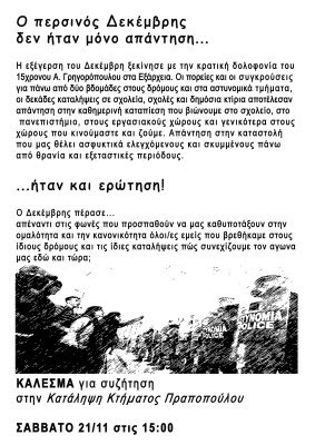 Κατάληψη Κτήματος Πραποπούλου Προφήτη Ηλία 49 απέναντι από την είσοδο του Θεάτρου Ρεματιάς Λεωφορείο 402: στάση "Γιασεμιών" Τρόλλευ: 18 και 19