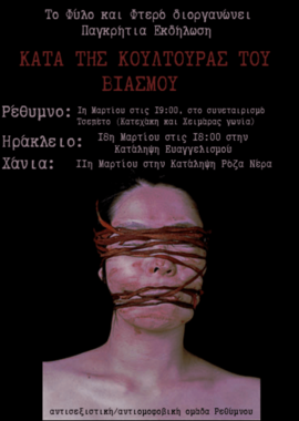 Στα πλαίσια του καλέσματος που έγινε τον Δεκέμβρη για Πανελλαδικές Δράσεις κατά της Κουλτούρας του Βιασμού, από φεμινιστικές και κουήρ συλλογικότητες της χώρας, διοργανώνουμε Παγκρήτιες Δράσεις.