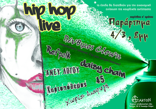 Hip-hop live οικονομικής ενίσχυσης στο Παράρτημα ,τη Παρασκευή 4/3 μετά τις 8.00 μ.μ