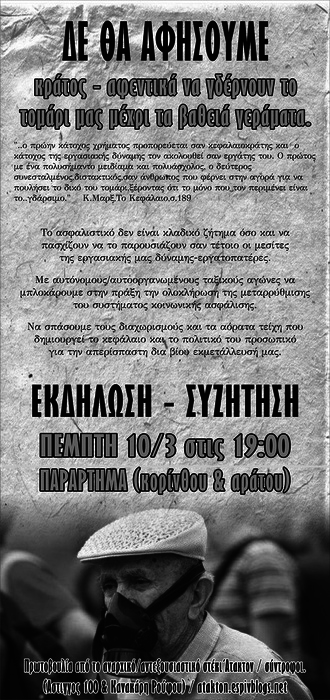 Πρωτοβουλία από το αναρχικό/αντιεξουσιαστικό στέκι Άτακτον