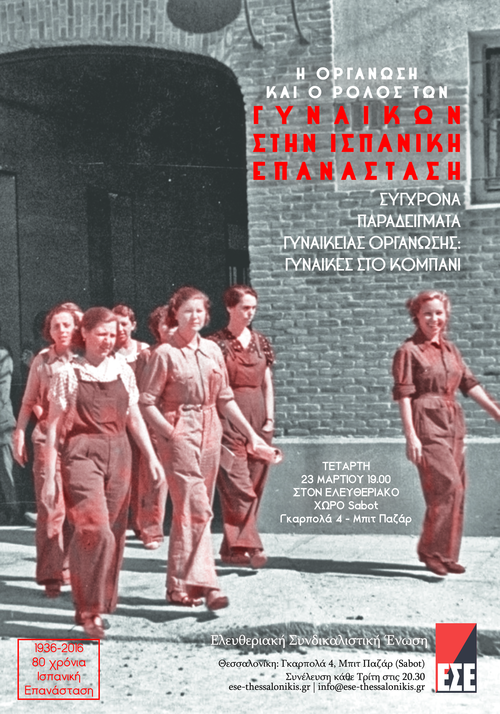 Η οργάνωση και ο ρόλος των γυναικών στην Ισπανική Επανάσταση. Σύγχρονα παραδείγματα γυναικείας οργάνωσης: γυναίκες στο Κομπάνι.