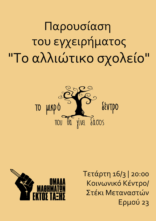 διοργανώνει η ομάδα μαθημάτων του στεκιού μεταναστών "Εκτός τάξης"