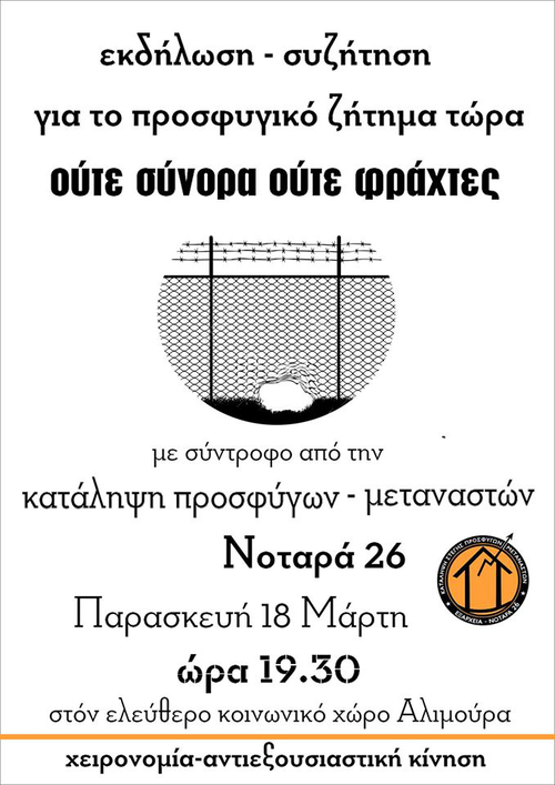 Το προσφυγικό ζήτημα σήμερα, η κοινωνική αλληλεγγύη και οι καταλήψεις στέγης προσφύγων/μεταναστών - ανοιχτή εκδήλωση/συζήτηση με σύντροφο από την Νοταρά 26 -