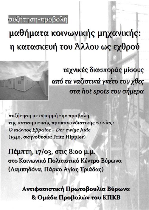 Συζήτηση με αφορμή την προβολή της αντισημιτικής προπαγανδιστικής ταινίας Ο Αιώνιος Εβραιος - Der ewige Jude (1940, Fritz Hippler).