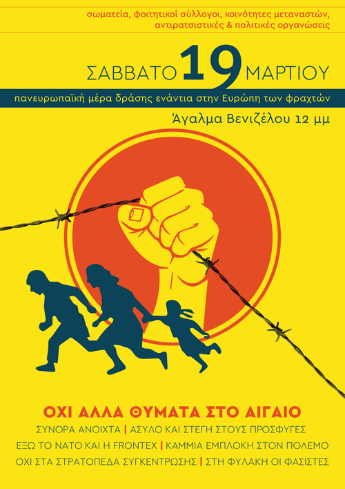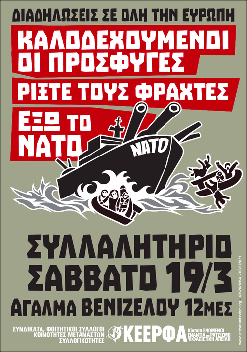 19 ΜΑΡΤΗ - Παγκόσμια Ημέρα κατά του Ρατσισμού. Έλληνες, Πρόσφυγες και Μετανάστες διαδηλώνουμε μαζί! Έξω το ΝΑΤΟ - Κάτω η Ευρώπη φρούριο