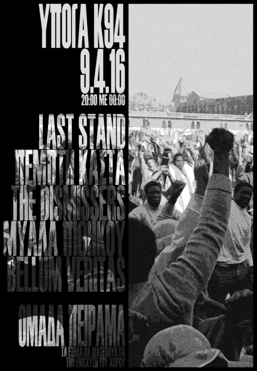 Το Σάββατο , hardcore punk live του οποίου τα έσοδα θα διατεθούν για το "σουλούπωμα" της σκηνής και του ηχητικού εξοπλισμού για τις καλύτερες συνθήκες των live και των μπαντών που παίζουν.