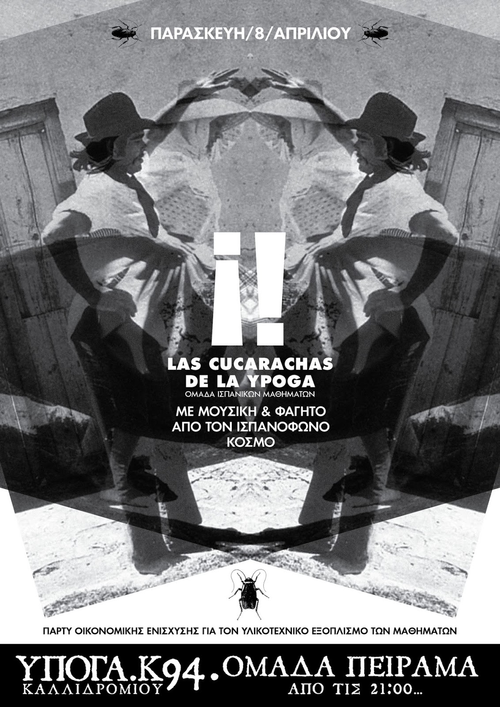 Αυτήν την παρασκευή Πάρτυ με ισπανική μουσική και φαγητό από τον ισπανόφωνο κόσμο το οποίο διοργανώνεται από την ομάδα ισπανικών.Τα έσοδα θα διατεθουν για τον υλικοτεχνικό εξοπλισμό των μαθημάτων.